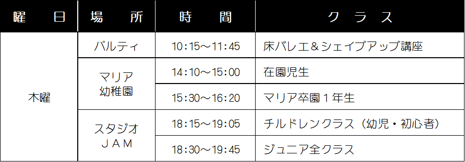 上三川スタジオと駅東スタジオJAMのクラシックバレエ講座の料金です